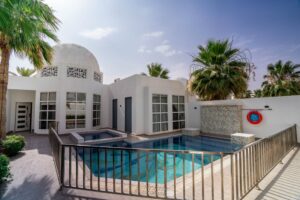 private pool and garden. Spanning 700 square meters, it includes a queen bedroom, a twin bedroom, and a bunk bedroom, alongside two living rooms, a dining area, and a fully equipped kitchen. With five bathrooms, a private entrance, parking, air conditioning, and smart TVs, this villa is the perfect retreat for families seeking relaxation and comfort!